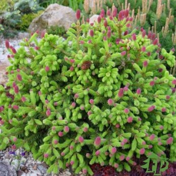Ель обыкновенная Pusch - декоративная карликовая форма, с полушаровидной кроной. В возрасте 10 лет достигает 0,3 м высоты и 0,5 м в диаметре. Требования к почве и влаге средние. Предпочитает достаточно увлажненные и плодородные садовые почвы. Теневынослива, но лучше развивается при достаточном освещении. Морозостойка. Главным достоинством сорта являются многочисленные шишки небольшого размера. При распускании они бывают от нежно-розоватого до насыщенного красно-фиолетового цвета. Такое оригинально растение отлично подойдет для посадки в альпинариях, рокариях, низкорослых хвойных группах, послужит хорошим дополнением вересковых садов.
