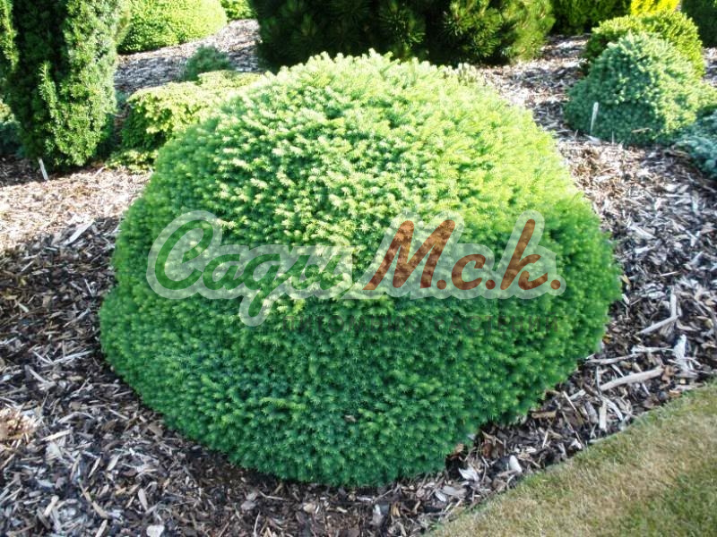 Ель восточная Aurea - медленно растущее дерево обычно с неправильной рыхлой конической формой кроны. Годовой прирост 15 см в высоту и 5 см в ширину. В возрасте 30 лет достигает 6-8 метров в высоту. Ветви декоративно свисают вниз. Хвоя короткая, темно-зеленая, блестящая. Весной молодые приросты золотисто-желтой окраски, летом они становятся зелеными.